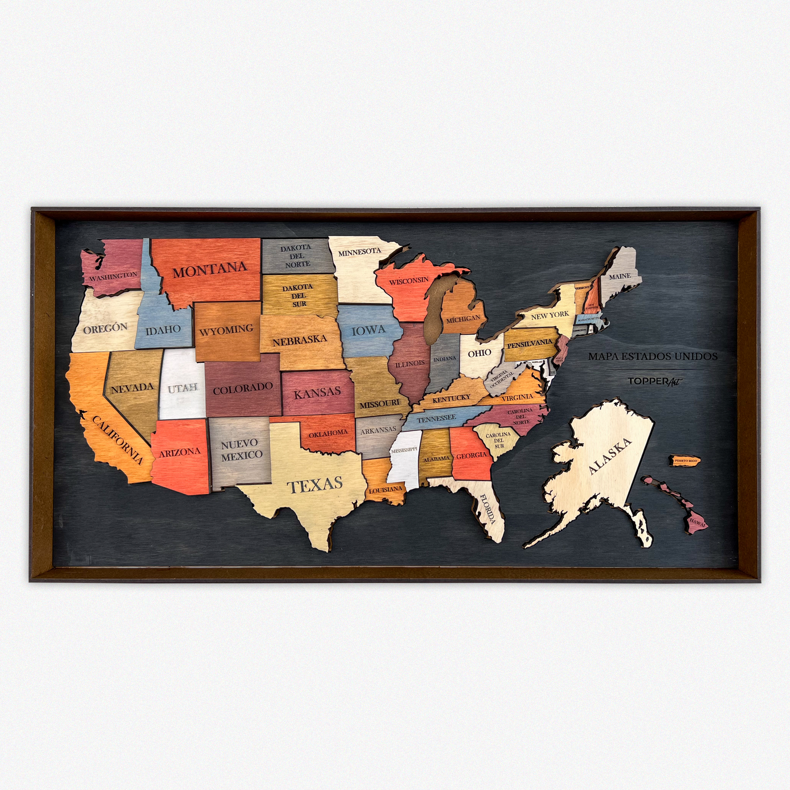 MAPA DE ESTADOS UNIDOS DE AMÉRICA DE MADERA 3D